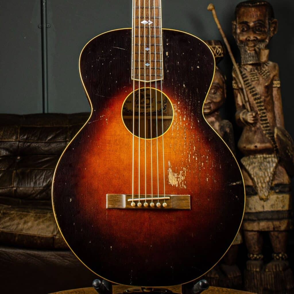 We started to develop our aged finish in 2010. It was the result of an accident with one of our Buddy Holly J45s. The guitar got a bad scratch during the build so we thought let’s age it to look like Buddy’s original guitar.